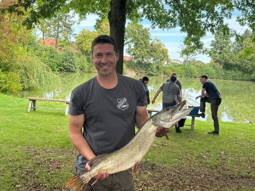 Das ist ein sehr ordentlicher Fang – ein Hecht in dieser Größenordnung liegt typischerweise schon im Bereich eines kapitalen Fisches und reicht bei Vereinsfischen oft klar für den Königstitel.